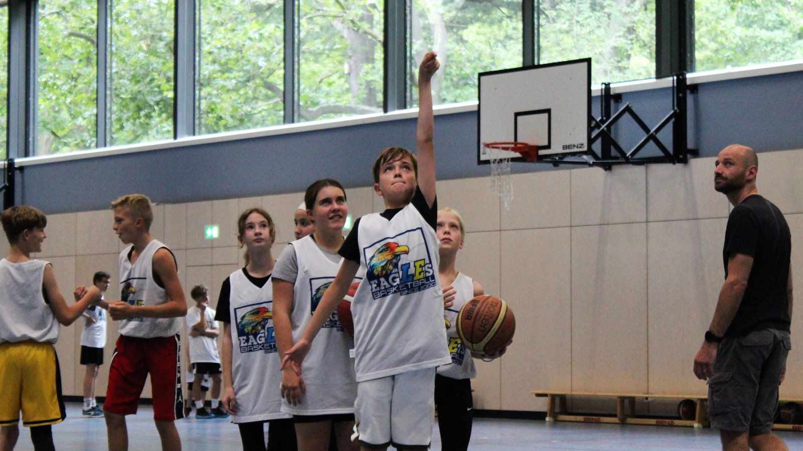 In den Sommerferien laden wir wieder zum Eagles Basketball Camp für Kinder und Jugendliche von 11 bis 17 Jahren. Das Camp findet vom 8. bis 12. Juli 2024 immer von 9 bis 13:30 Uhr in der Sporthalle der Schule am Palmengarten statt.