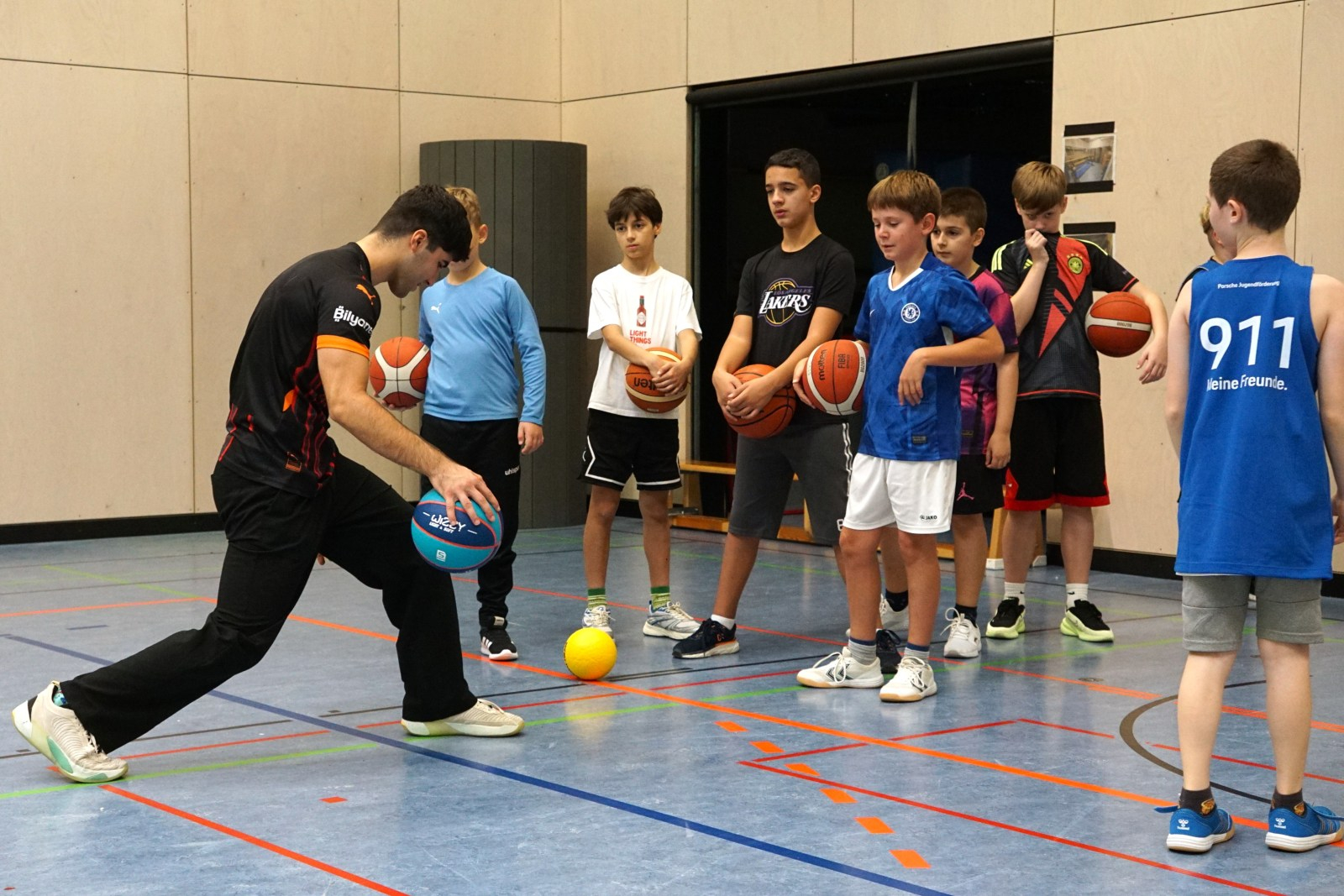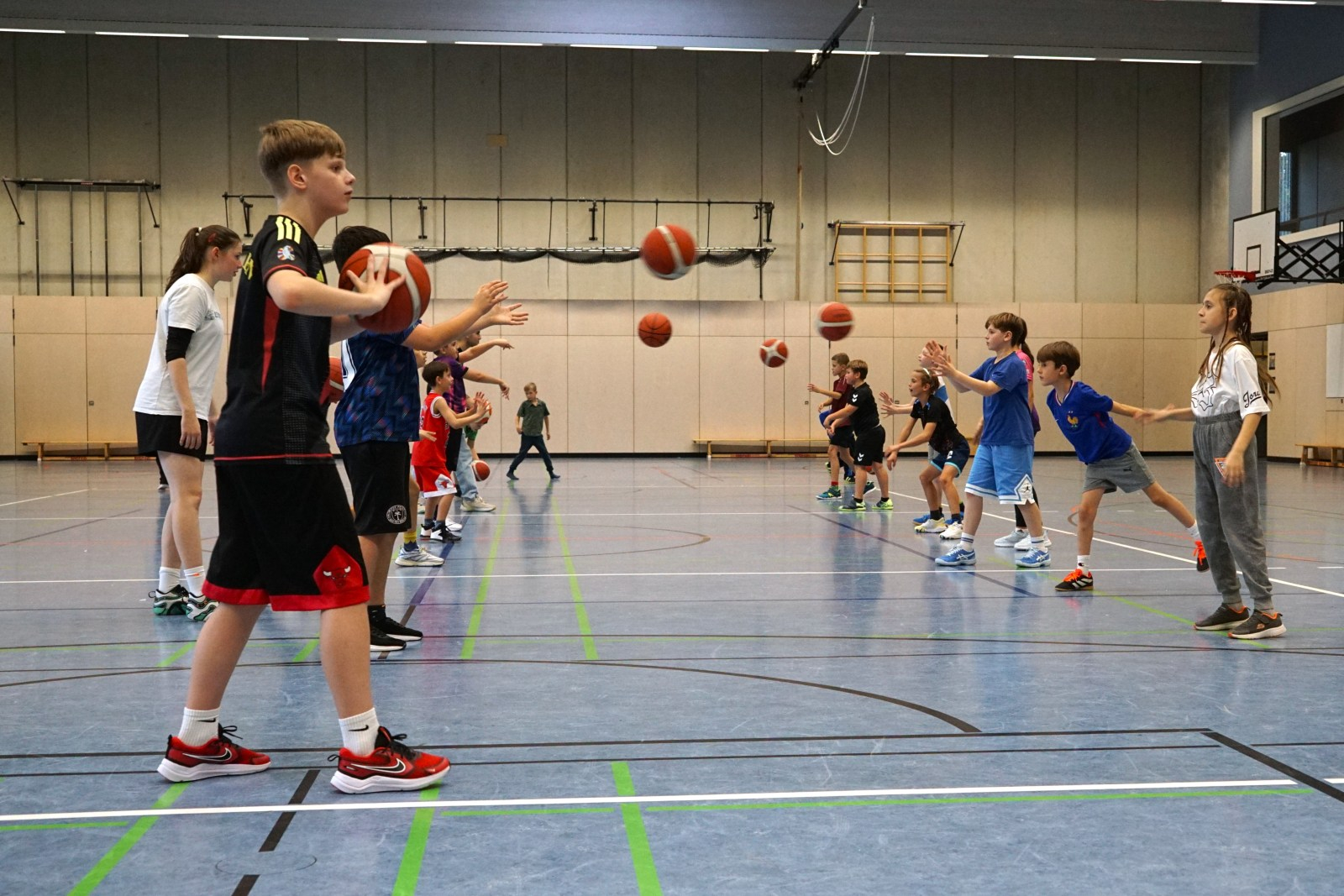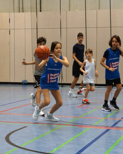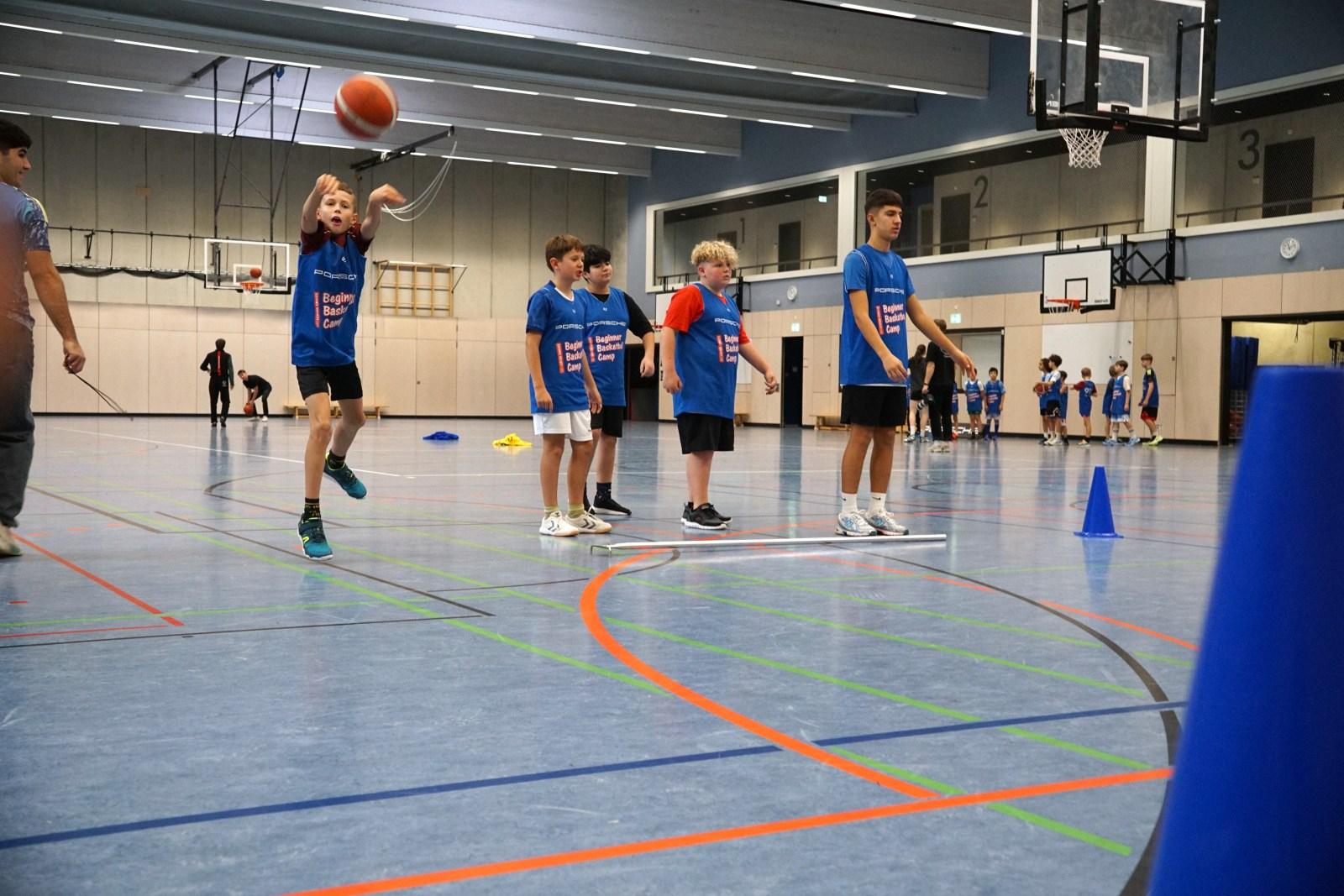 In der zweiten Herbstferienwoche empfingen wir 25 Kinder zu unserem Beginner Basketball Camp in der Sporthalle der Schule am Palmengarten. Das Angebot richtete sich an Anfängerinnen und Anfänger im Alter von 7 bis 11 Jahren und war kostenlos, da es von Porsche gesponsert wurde. Von 10 bis 15 Uhr lernten die Teilnehmerinnen und Teilnehmer auf spielerische Weise Passen, Dribbeln und vor allem Werfen. Im Laufe der Woche kam noch das Verteidigen hinzu sowie einfache spieltaktische Übungen.