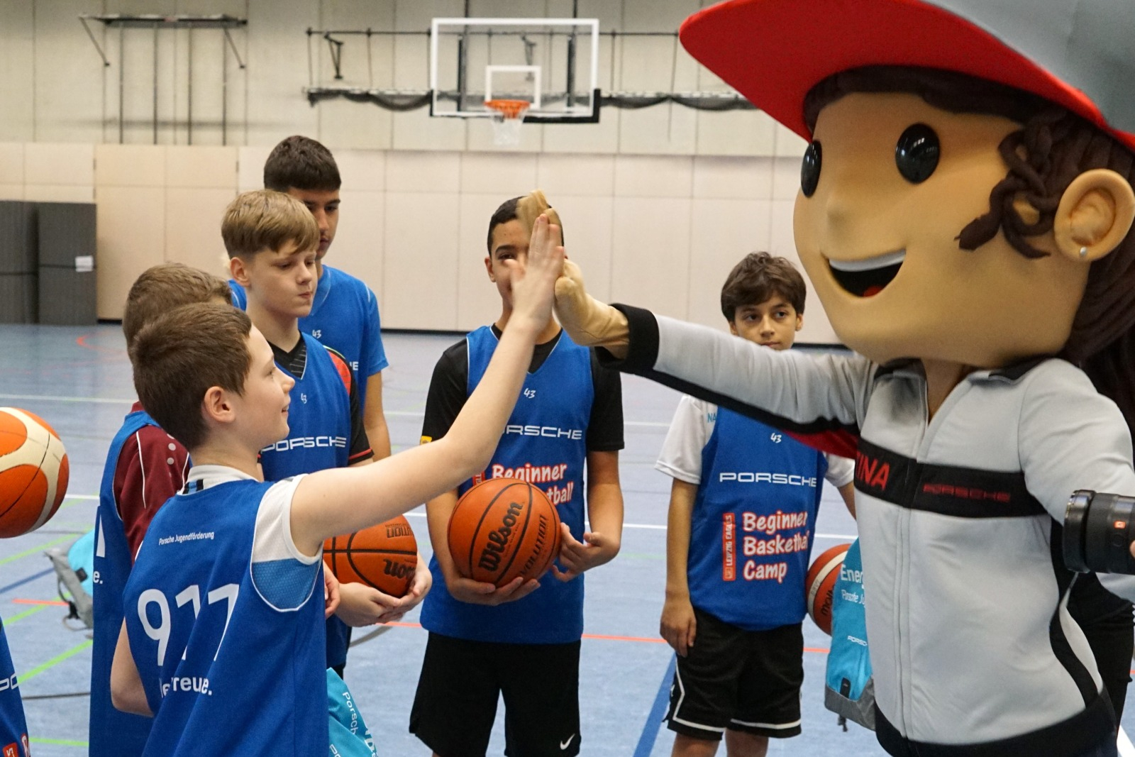 Der Höhepunkt war für die Kinder der Mittwoch, als Camp-Sponsor Porsche mit Maskottchen Tina Turbo zu Besuch kam und allen einen Sportbeutel sowie eine Trinkflasche überreichte. Außerdem stand ein Porsche Macan vor der Halle und wer wollte, durfte sich hinter das Steuer setzen.
