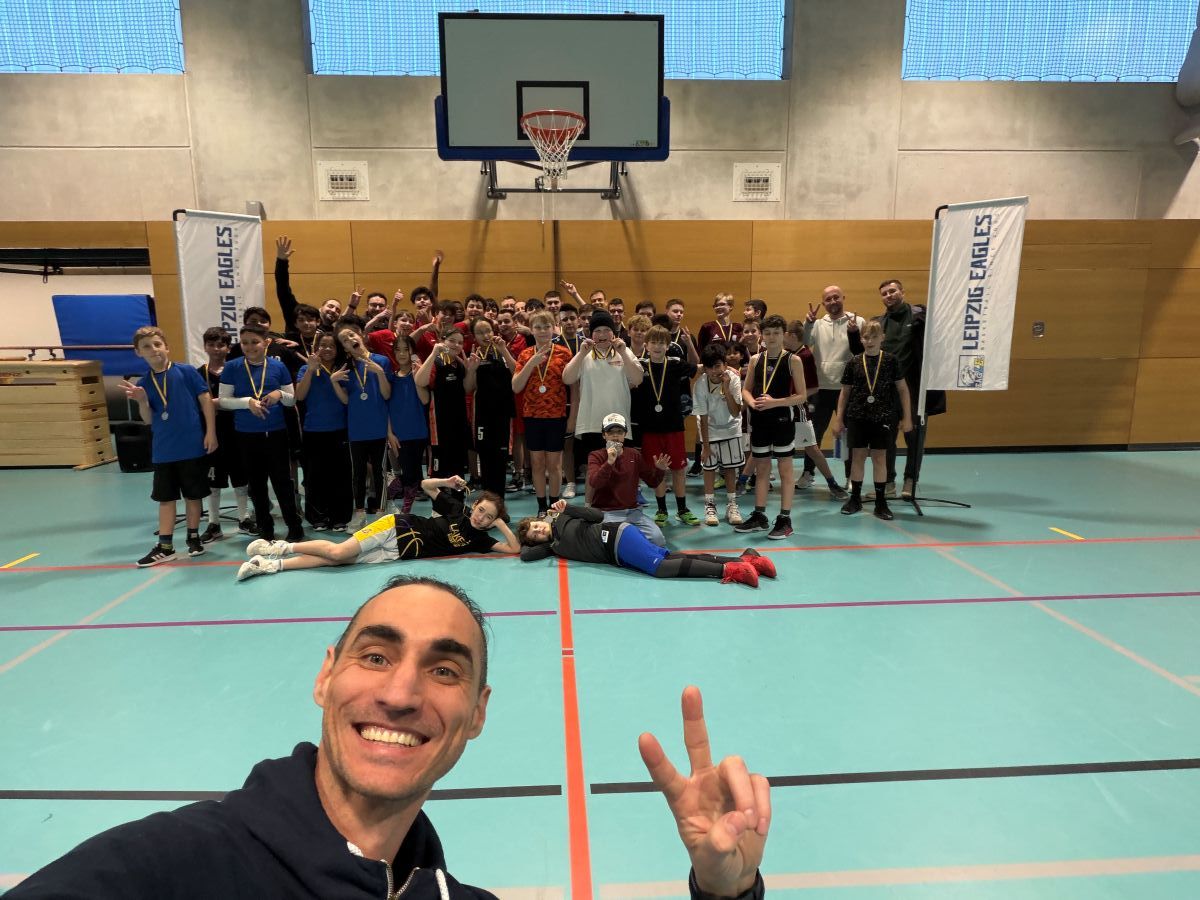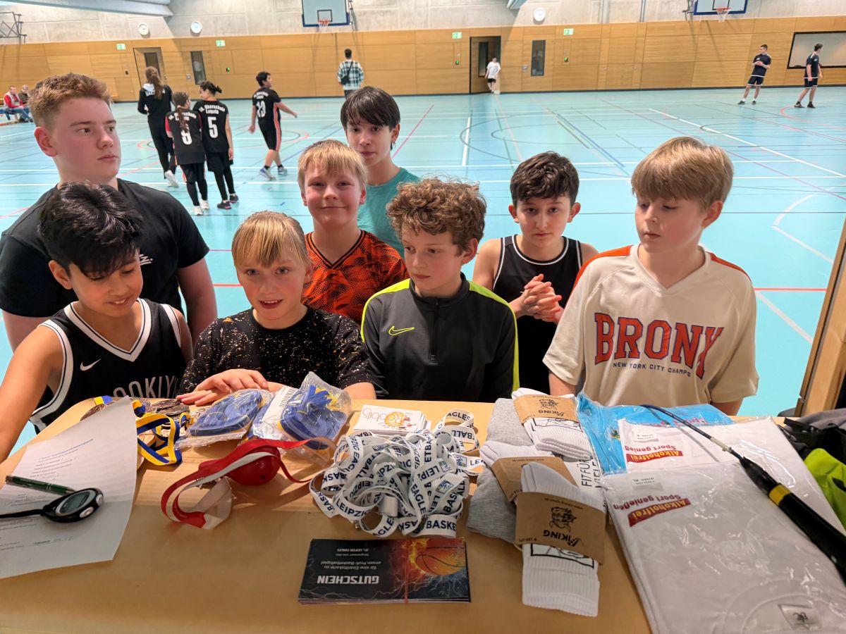 Ein besonderes Highlight war erneut das Basketball-Quiz in den Spielpausen. Mit Fragerunden zu deutschen Nationalspielern wie Dirk Nowitzki und Dennis Schröder bewiesen die Kinder und Jugendlichen nicht nur sportliches Können, sondern auch beachtliches Basketballwissen. Die Preise – Trinkflaschen, Caps, T-Shirts und weitere Give-aways, gesponsert vom Basketballverein Leipzig Eagles e. V. – fanden großen Anklang und gingen schnell weg.